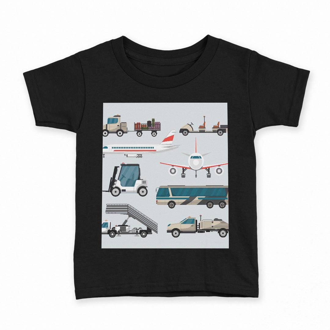 tシャツ キッズ 半袖 黒地 ブラック デザイン 90 100 110 120 130 140 150 Tシャツ ティーシャツ T shirt 016428 乗り物 飛行機 バス トラック 車