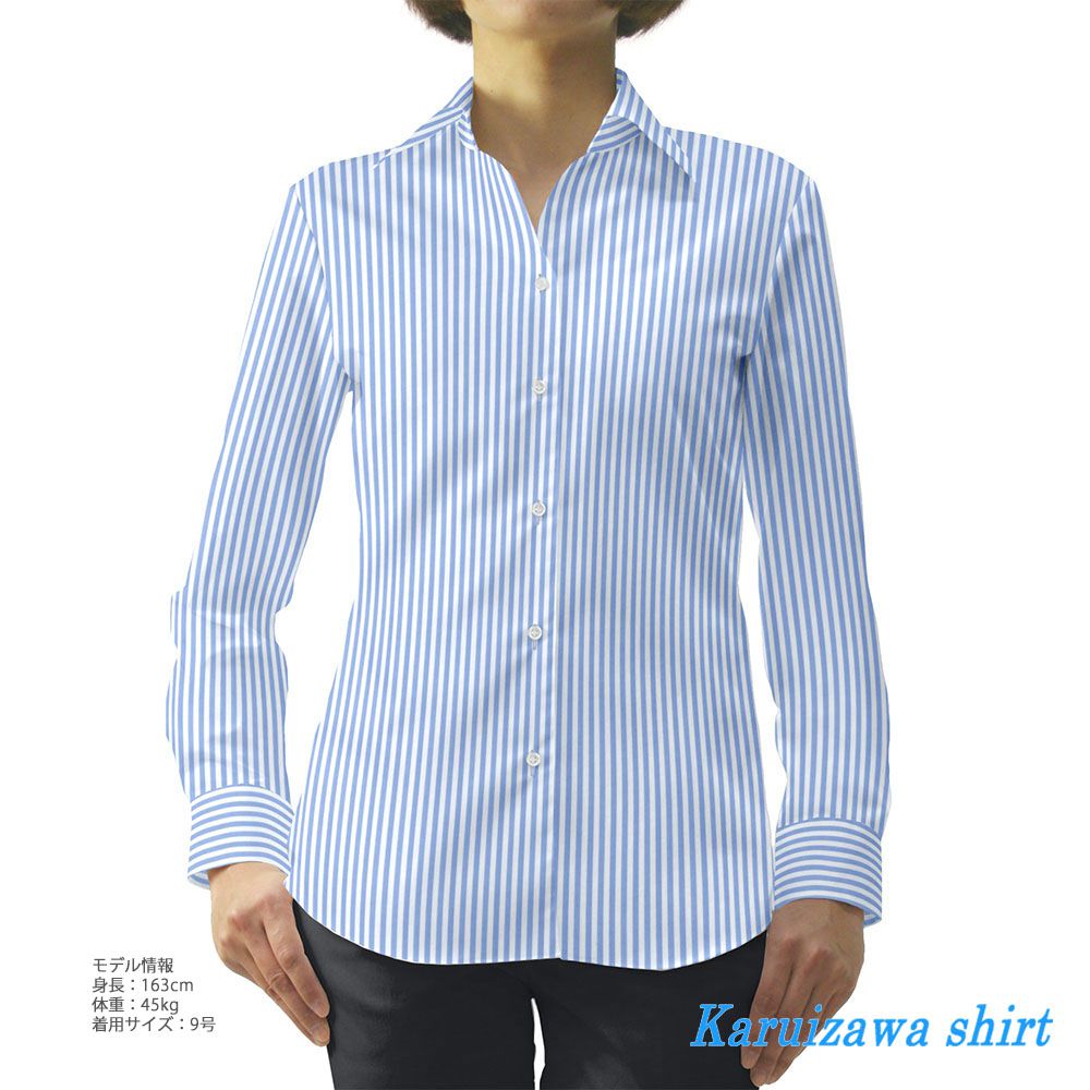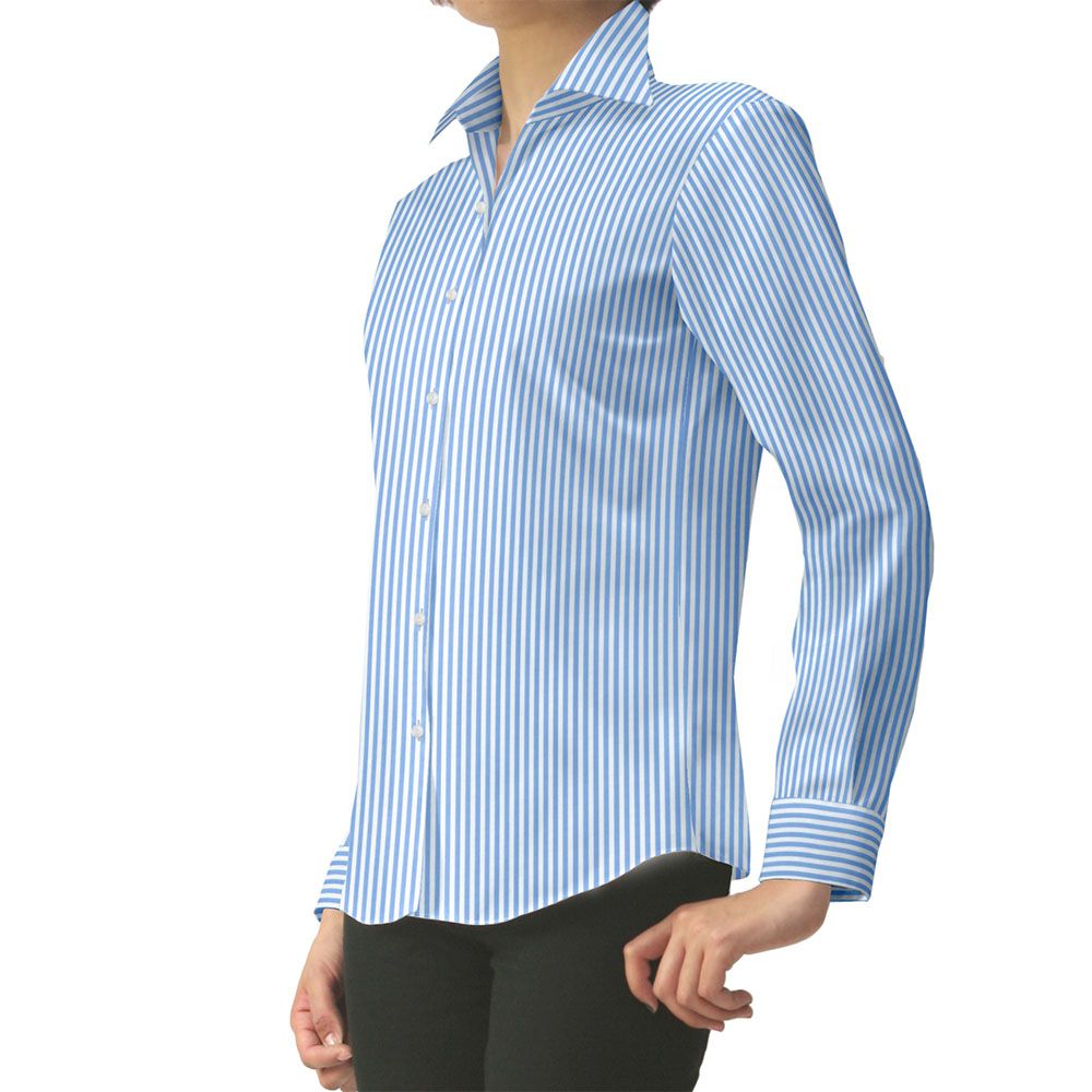 オーダーシャツ レディース ワイシャツ ブラウス オーダーワイシャツ 長袖 半袖 七分 大きいサイズ スリム らくらく オーダー 日本製 形態安定 綿100% 軽井沢シャツ スキッパー ライトブルーロンドンストライプ [R30KZAA12]【送料無料】